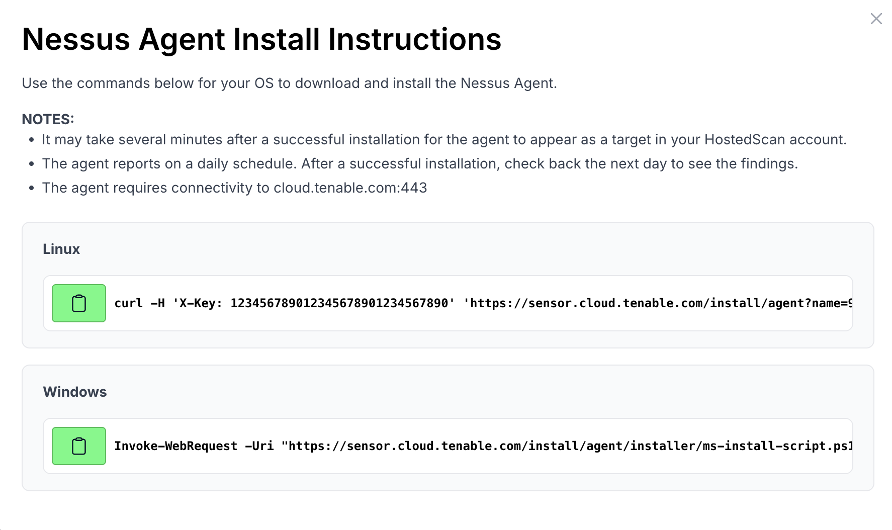 If you encounter issues with Nessus Agent installation or agent-based scanning, Contact support at hello@hostedscan.com for assistance.