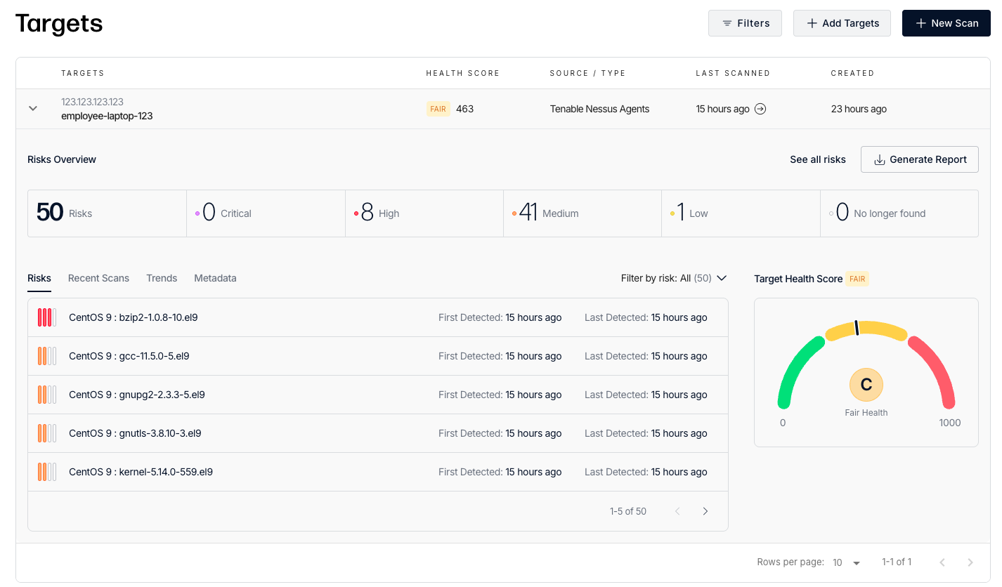 HostedScan offers powerful agent-based scanning via the Tenable Nessus Agent. The agent is installed on each device and reports security findings to your HostedScan dashboard and reports.